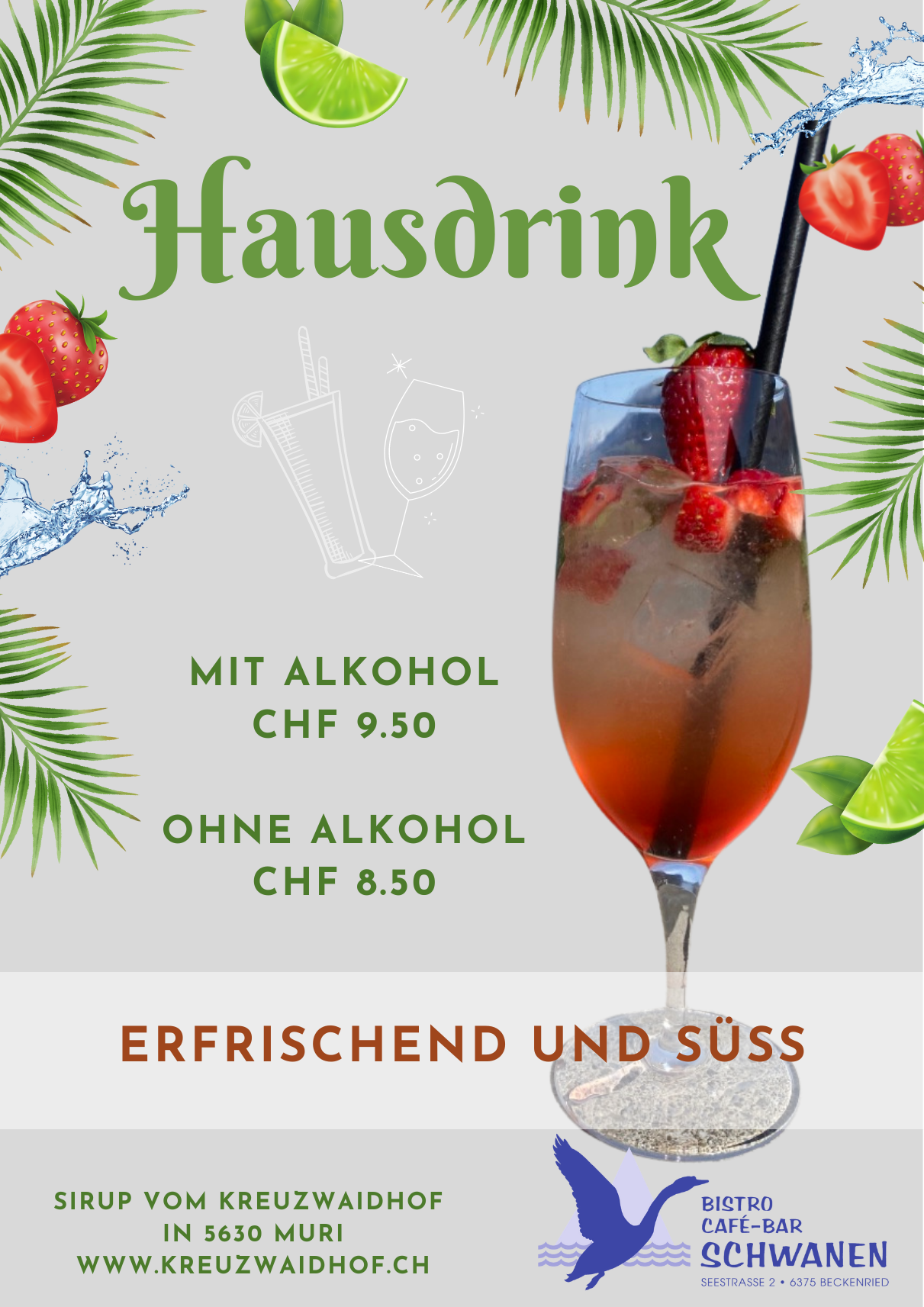 Wählen Sie eines unserer erfrischenden Getränke aus oder lassen sich einen feinen Cocktail mixen. Zudem reicht unser Angebot von verschiedenen Tees, Kaffees über Spirituosen zu einem grossen Angebot auch an Alkoholfreiem.